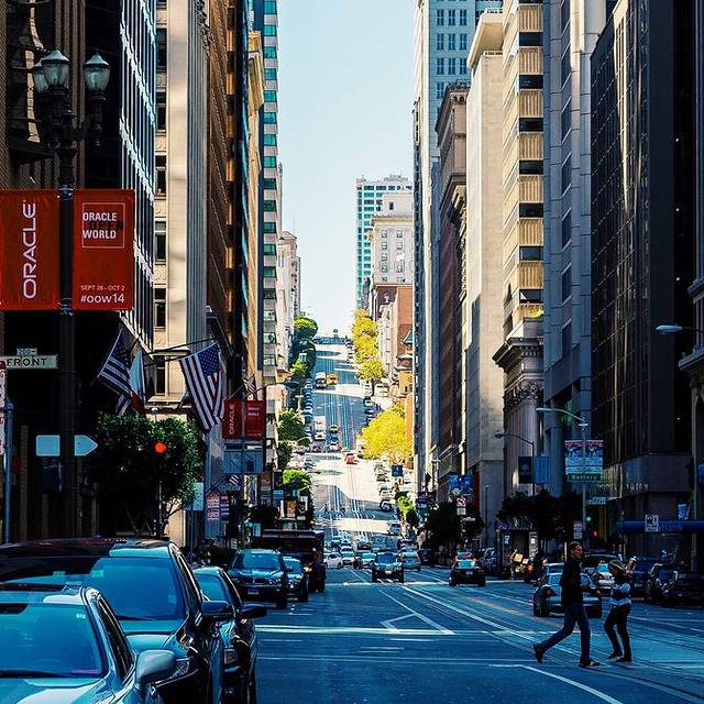 然后我们从另外一个大桥 好像是Baybridge回到了旧金山,下桥不远就是加利福利亚大街