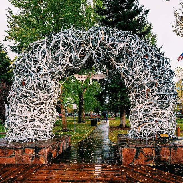 盐湖属于汽车半日游的城市了,老公有预谋地在网站搜索了XXX SPORTS馆,买到了他预谋已久的弓,我们后面就拖着这个大家伙上路。刷了盐湖的摩门教堂和市政厅照片,赶往今天的第一站JACKSON小镇,路途的确很遥远,而且因为购物浪费了时间,后面发现应该第一晚住JACKSON镇更合适。这个小镇美丽且户外用品店超多,吃饭也是这几天来用丰盛形容了,有中餐馆和泰餐。