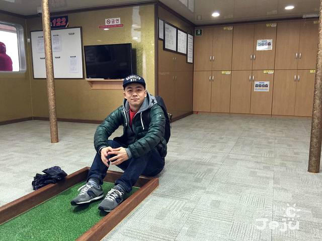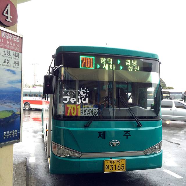 根据出发前准备的部分攻略,找到济州市区内的公共汽车站,乘坐701路前往牛岛的港口。
