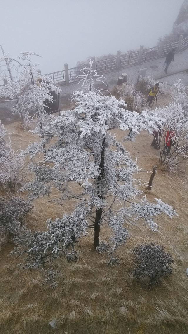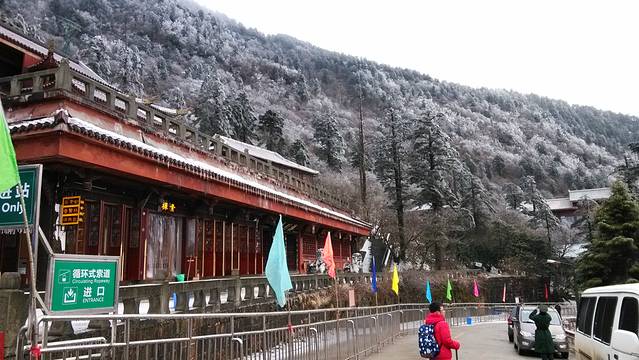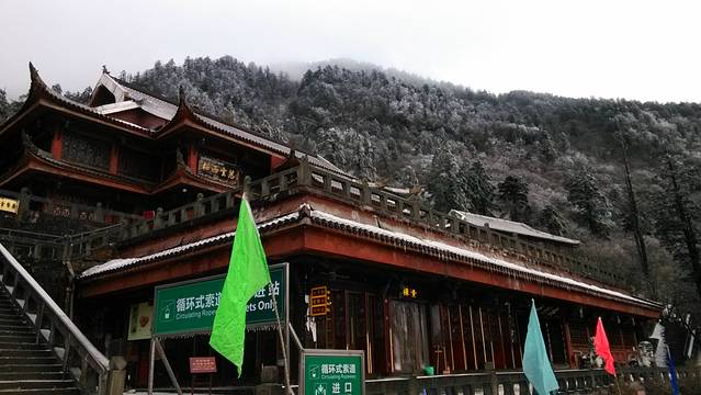 最后一天早上五点半起床,六点出发,六点半到接引殿乘坐缆车上金顶,因下雪的缘故,放弃徒步上金顶,如果要徒步上金顶,早上四点多就得出发,整个山路没有路灯,天也没亮很危险。