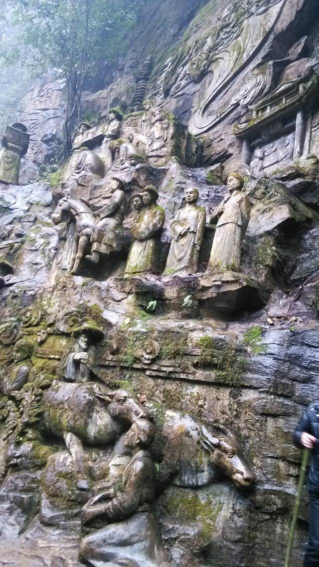 这段全是山路从伏虎寺出来穿过一群农家乐,然后开始走山路。刚过农家乐就有一个小房子开始查票(门票),查完门票上山走30分钟到雷音寺途中有个卖东西的商店,店主是个老奶奶,人很好,东西不算贵(部分还是有点贵),买了一把伞20元,坐着休息了一会儿。雷音寺要收门票几块钱,但我不是信徒,在外面转了一圈继续走了40分钟左右到了纯阳殿。从纯阳殿出来开始基本都是下坡,又走了40分钟左右,我已经开始怀疑自己是不是走错了路,因为又到了山脚的位置了,只是位置不同,还有公路和好多农家乐,神水殿和中峰寺的位置不算太远,路比较缓和,不像伏虎寺到雷音寺那样的台阶。广福寺只是路边的一个小寺庙,不容易发现,当你看到时会以为是农家乐,因为寺庙不大,从路边上坡。下午一点到清音阁,人超级多(ps:去清音阁的路上还要查第二道门票)。