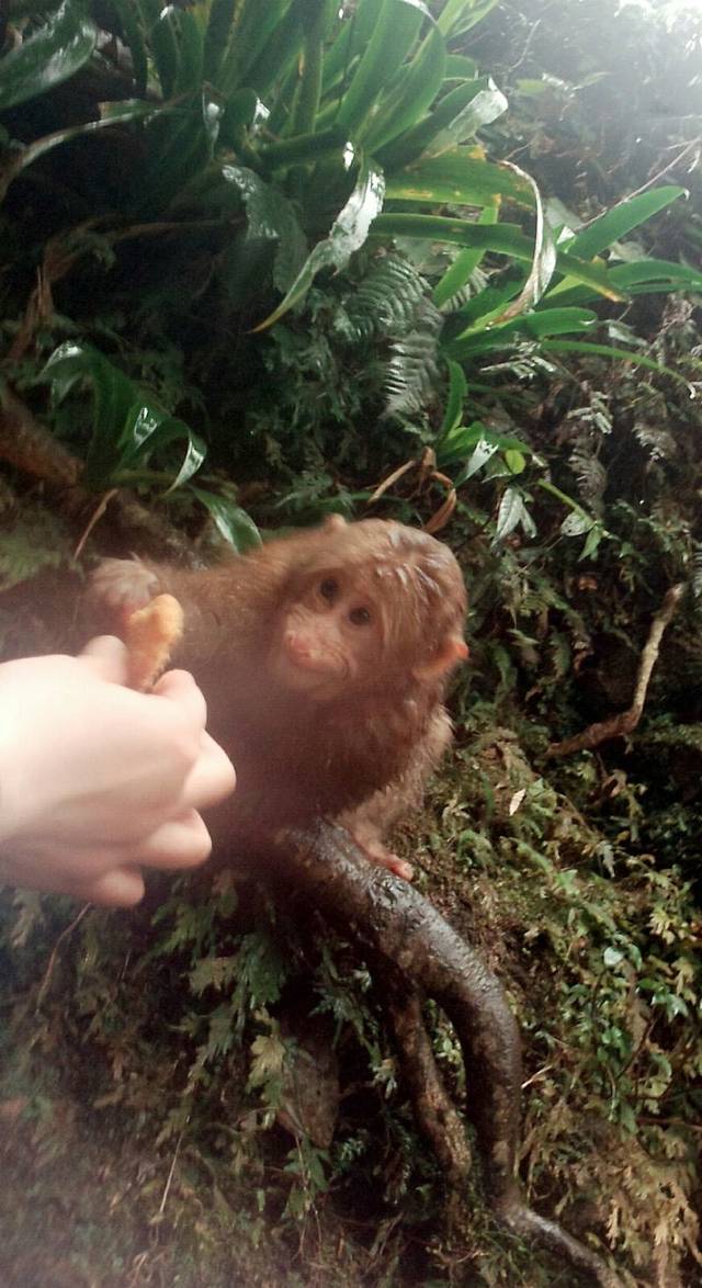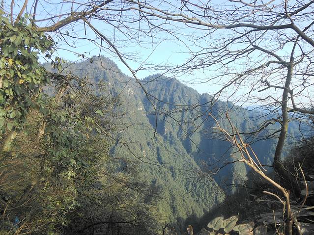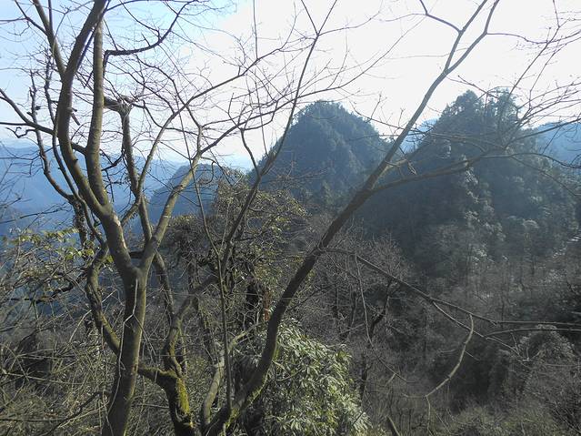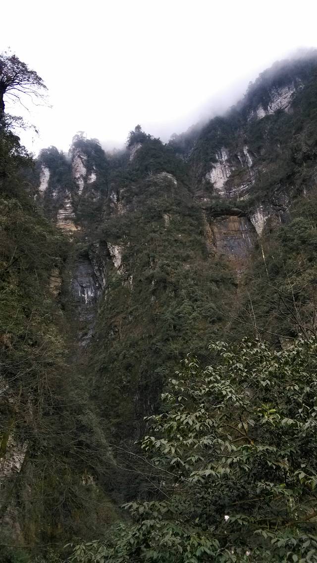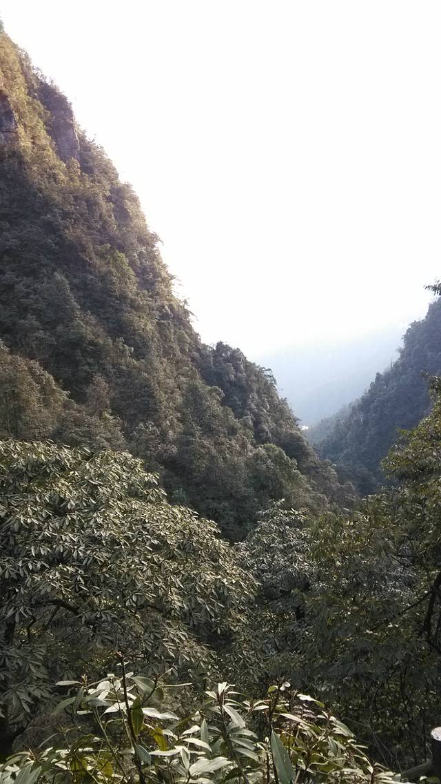 早上六点半起床,七点在寺庙吃早饭(免费),七点四十出发,一路上天还没亮全是陡坡,可能是因为临近九十九道拐了,上坡连着上坡,拐弯后还是上坡,持续了半个小时左右,然后开始走平路,但不完全是平的,有时要上一些,还要下一些,总的来说就归为平路系列。完了赶紧下山,走到一个山坳里面,山上流的水清澈得要命,一摸还挺刺骨,正好我的水喝完了,拿着水瓶赶紧接一瓶这天然的山泉水(游客不用担心,这水是在深山里面,这段是在猴区上面没有污染,徒步的游客很少,所以这水是天然的山泉水,一路上还有好几个这样的山坳)。接完水,拍完照,转身就是九十九道拐的第一拐,看着这些拐,我顿时蒙了。硬着头皮上了1个小时左右到了 茶棚子,这里有一个亭子,旁边有一个小卖部,东西老贵。亭子是在小坡顶上,视野特别好,穿单件还有点冷,海拔1500米左右。休息十分钟后继续出发,走了大约十分钟,路拐弯的地方突然出来一只野猴子,然后一个扑通蹦树上去了,看样子是一只成年猴。我们三人结队通过,猴子没敢来犯。然后继续上坡,走了大约1小时左右到达仙峰寺(九十九道拐结束),在仙峰寺门口的小吃店吃了一碗水粉10元,然后继续上路,因赶时间,寺庙后面的九老洞我们没有去看。