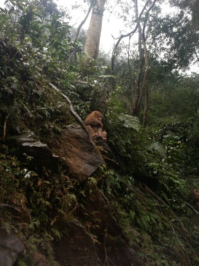茶棚子上不久遇到的猴子(黑色的是猴子)