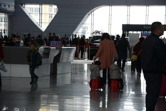 从家里拖着行李走到客运中心,(不远——十分钟会到),坐车去火车站坐动车,怕会赶不上火车,先是买了8:15分的票,后来想想还是不安,又提前了一个小时,买了7:15分的,早早上车,正月初二的高速公路,一路畅通,车上区区不足十位旅客。