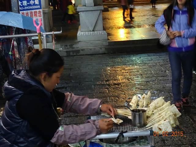 云南十八怪,牛奶串着卖,它们家的如扇非常好吃,淋上特制的鲜花酱,吃出来幸福的味道