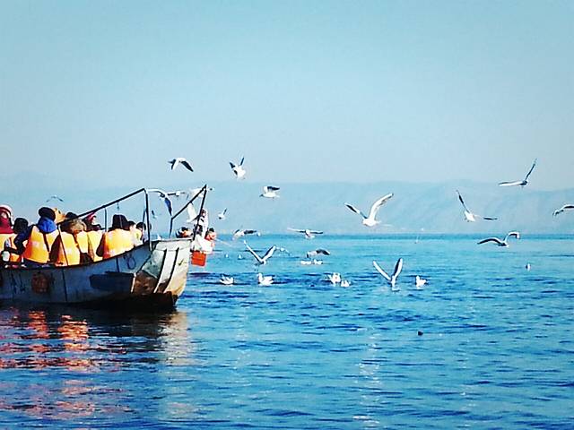 来滇池喂海鸥喇
