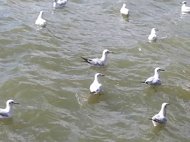 它们叫做红嘴鸥,来自西伯利亚,在气定神闲地游泳嬉戏