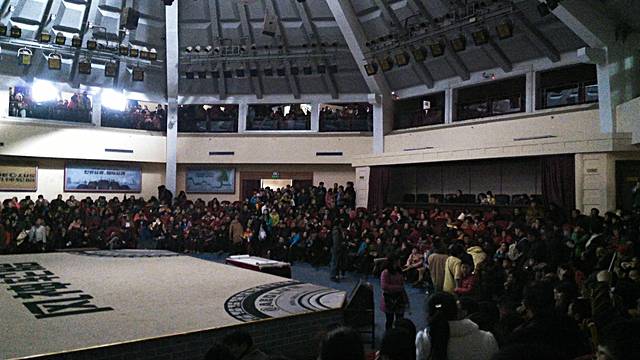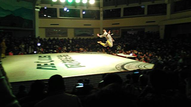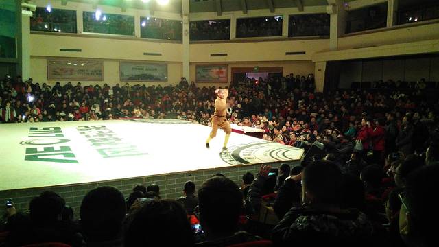 为了保证小朋友的兴奋度,选择先到武馆看武术表演,武馆在入口不远处,下午是每个整点一场,我们排了30分钟的队观看14:00的这一场。人山人海啊,过道里也坐满了人。
