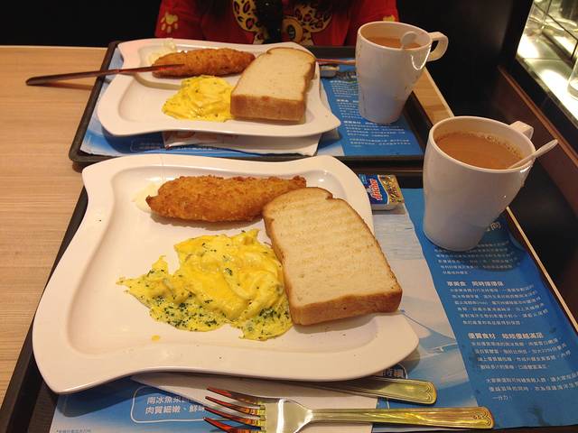 但是发现酒店隔壁太古城中心里的一家叫大家乐的 很多香港人在那里吃早餐 看起来也不错就懒病犯 就决定在这里吃 没想到一吃就爱上了 后来的早餐都是在这里吃的 哈哈哈 不要嫌弃