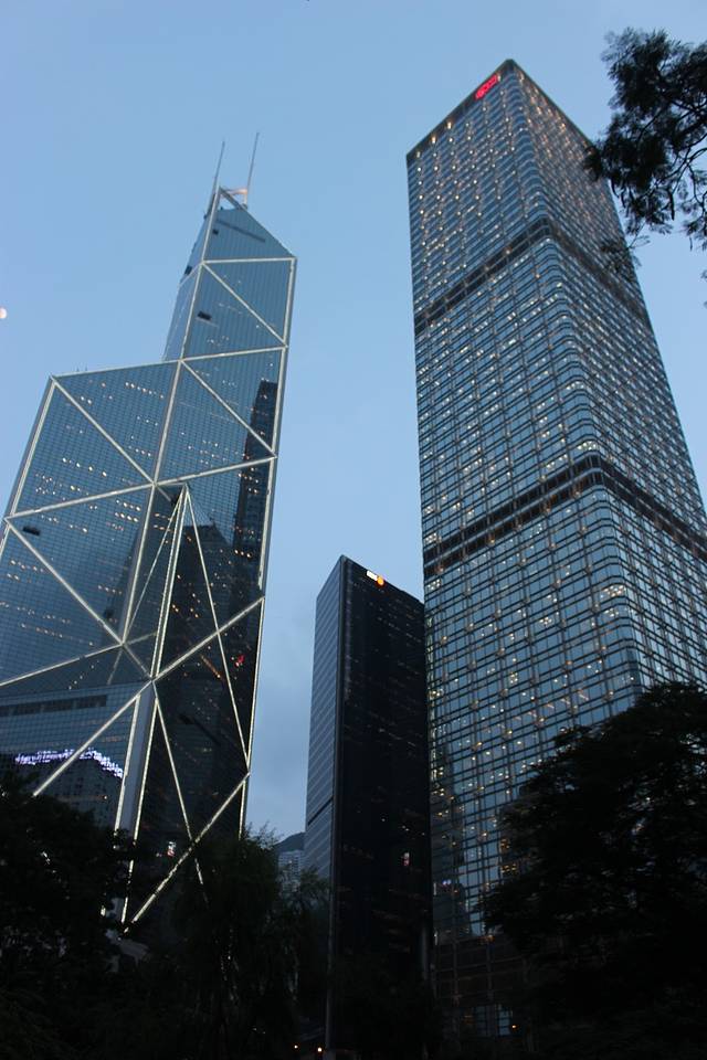 左边的是著名设计师贝聿铭设计的中银大厦 后面就是大富豪李嘉诚的长江集团啦