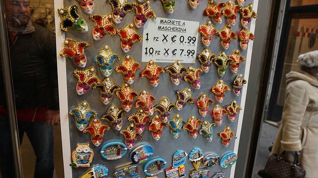 这里的大多数纪念品都是面具。图中的冰箱贴,0.99欧一个