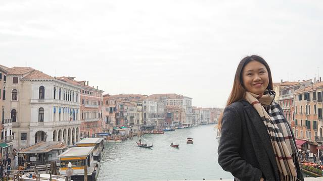 圣诞旅行的最后一站,威尼斯。从维也纳坐了八九个小时的火车的路程,亲眼目睹了沿途从冰天雪地到温暖阳光,大自然真是奇妙。看着火车在平静的湖面上穿过时,心也随着广阔的水域舒坦起来, 强烈推荐地面交通抵达,景色还是很迷人的。
