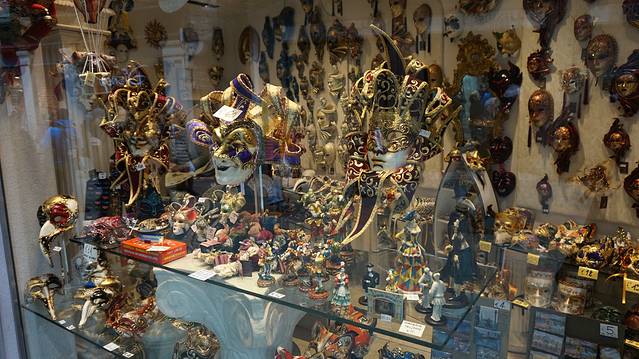 威尼斯很适合买东西,因为除了坐船再能做的就是shopping了。威尼斯的面具,玻璃制品都是很棒的,一定要买下个当做纪念。我在那买的挂在大衣上的面具胸针,走到哪大家都说很特别。还给属马的妈妈买了个水晶马,各家店的价格差很多,一定要比好再买。
