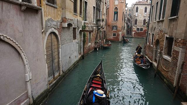 不过,到了威尼斯,才明白什么才是真正的水城。与其说是水流穿过了小城,更不如说是小城建在了水上。陆地上除了房子,就是窄小的小路,剩下的就都是水的地盘了。