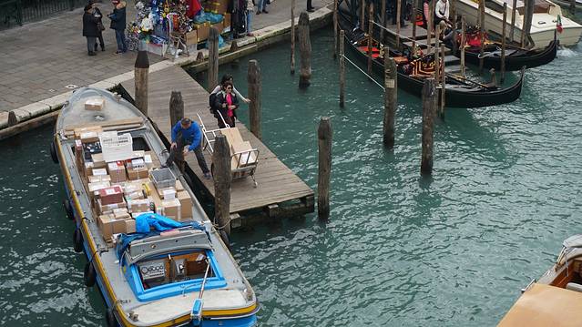 而且,更新奇的是,这里所有的交通工具都是船,连个自行车也没有。运垃圾的垃圾船,送快递的邮政船,搭载游人的公交船,打的的出租船,总之你能想象的一切有功用的交通工具都被船代替了。有的人家开门就是河道,门口不是停着一辆车,而是拴着一艘船,这样的生活真是相当有趣