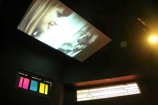 在步行街上,有个歌莉娅的店,里面有一些展览,有花店,楼上有咖啡厅。
