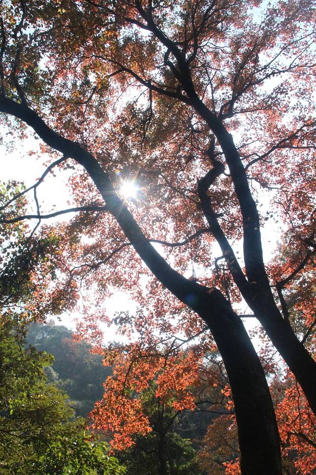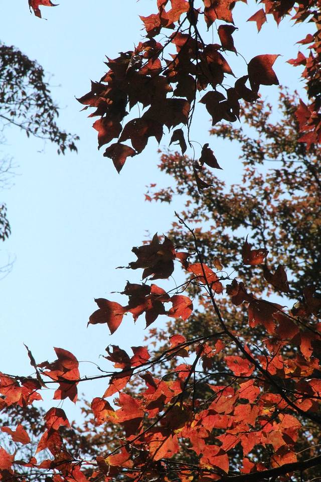 满山红彤彤的枫叶,很震撼,真正感觉冬天的到来。