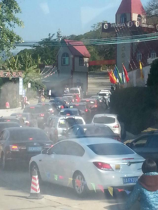 我们一早出发,由于从化距离市区比较远,没有到石门山森林公园直达的车,所以开车过去。但是万万没想到,还没真正开上山就开始塞车咯。