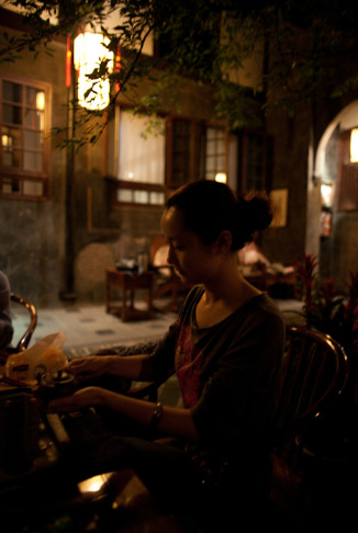 这一张,是某一天月朗星稀的夜晚,在明轩书栈茶话安仁,麦迪帅哥拍的,脸黑,我却觉得可爱极了。