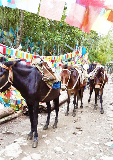 雨崩有2个入口,一般走西当入,尼龙出。尼龙有2个小时的路特别陡,就1米宽,旁边就是悬崖。。好可怕,不过如果从尼龙入不要门票哦~~