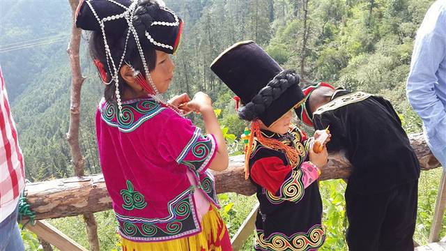 然后带我们来一个类似购物的地方。带我们喝了“三道茶”,第一杯苦,第二杯甜,第三杯忘了。。。甜的腻人阿。。还看了白族特色歌舞表演。。