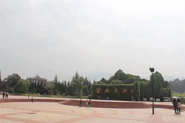民族村门口。不需要门票的,但是里面也有景点,进去就要钱了。我们没进去