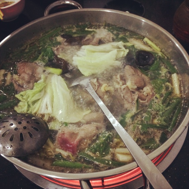丽江的土鸡腊排骨火锅,当地一大特色。