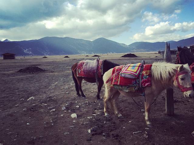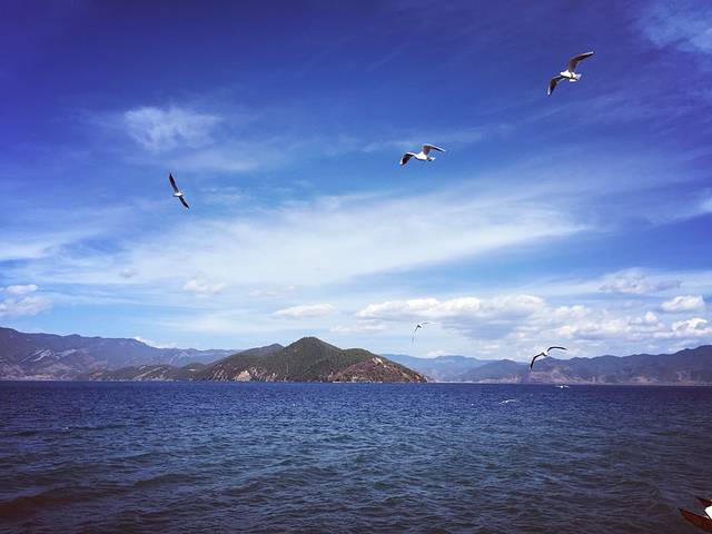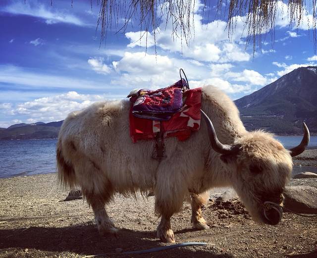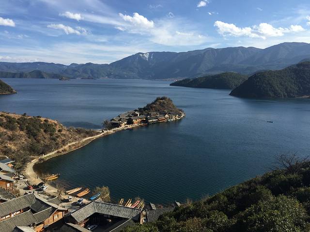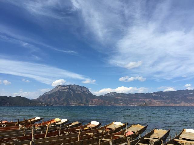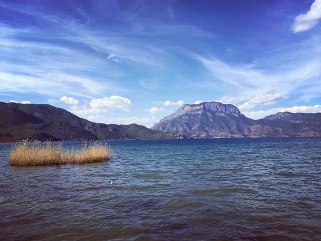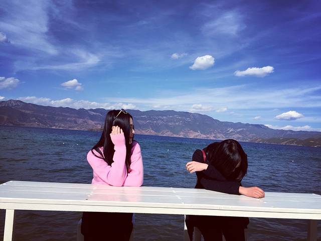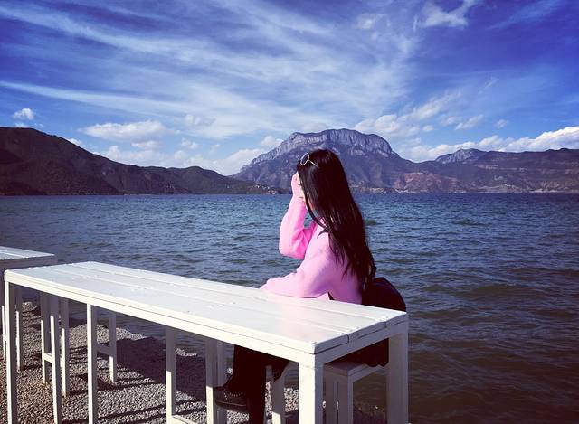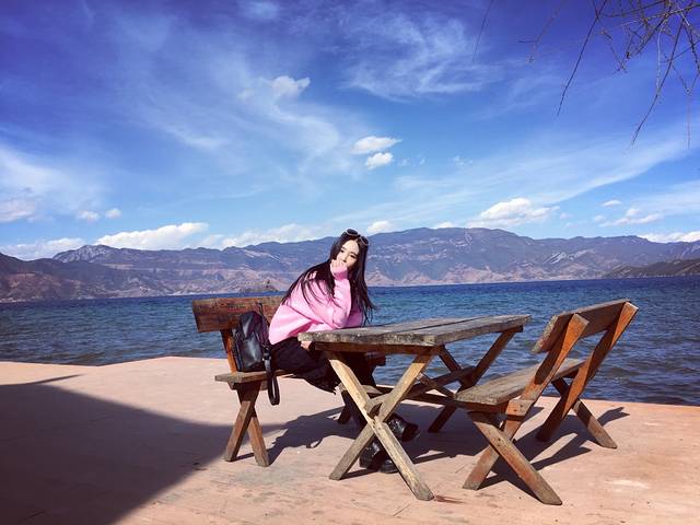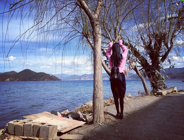 如果时间允许,我们一定会租一辆小电摩来环湖,但是我们参加了四点就要开始的摩梭家访,100元每人,所以我们在湖边拍了拍照,享受大自然给予我们的如此动人的恩惠。