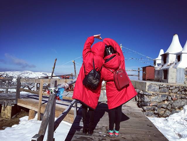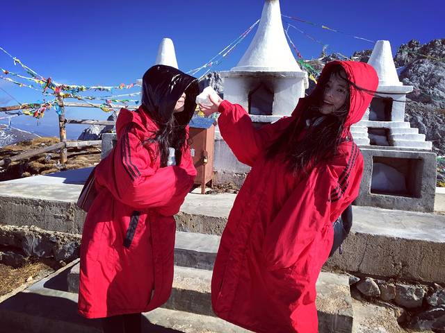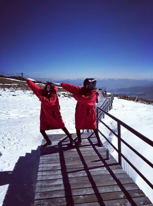 同时我们还在司机师傅那里借了羽绒服。没错,就是上镜的大红色羽绒服!30元每人,下山后就还给司机师傅。