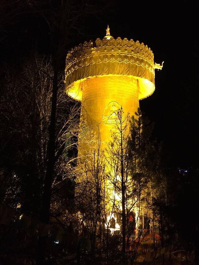吃完晚饭去月光广场转了转,硕大的转经筒在我们几个游人的使劲下真的也转了起来,还转的飞快。