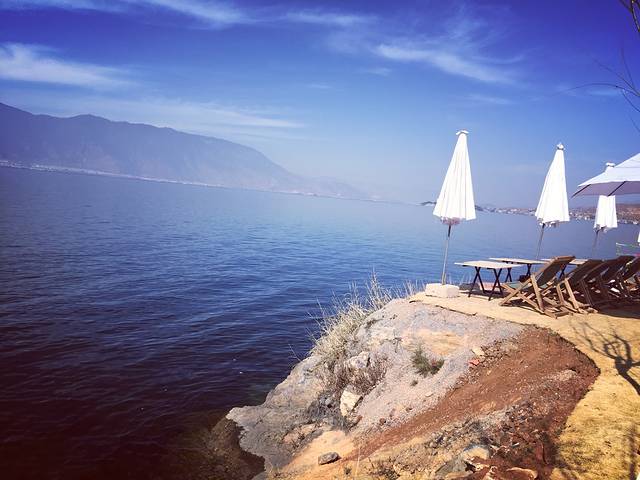 因为下午要从双廊去丽江,在淘宝上预定的车程,中午一点半在双廊高速路口上车,所以我们环湖没有多久,估算好来回时间,就把小电摩还给了老板,拿了行李准备出发。