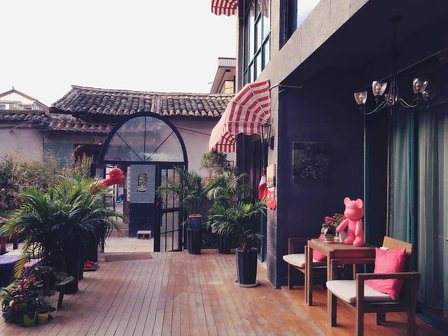 下车之后,打电话给客栈(凡间度假客栈)老板,他马上来南门接我们了,帮我们拿行李箱,问我们接下来的旅程安排,甚是热情。这家客栈就在南门边上,门口就是公交站,很是方便。