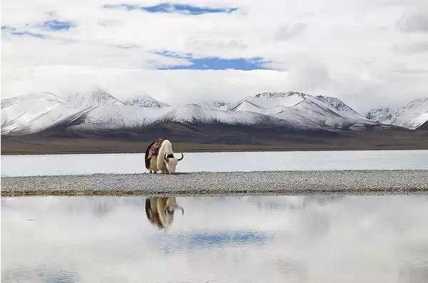 这儿的牦牛纯净如雪,和雪山的冰天雪地相得益彰,牵牛的藏民将我带进冰雹中,硬厚的牛角戳了下我额头,真疼~