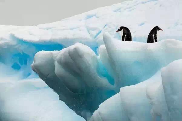 栖息在冰冷水中的巴布亚企鹅。不知俩家伙是在生气呢,还是为彼此遮风呢?
