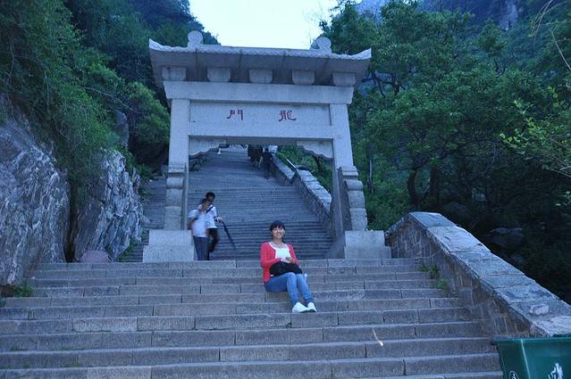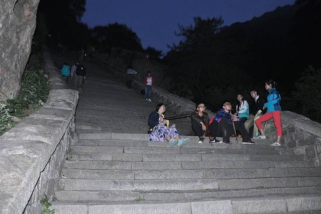6.15下午两点半从郑州出发驱车六个小时到达泰安泰山已经天黑了。一碗五块钱的鸡蛋面把肚子填饱了。考察了购票处说是看日出要夜里两点上山的。还好,这天气不是很凉。坐了末班三点的车到达山底三点半开始徒步爬行。漆黑的夜里途中的登山客陆陆续续。在车上司机给我说过一句话,不明白你们是找罪受还是干嘛,看日出吧,也赶不上了,爬山吧还不如到八点。我心想的。这样的时间出发会有不一样的感觉和收获。事实证明也是。起初的几步台阶,我就自感不行了。觉得姑娘又严重的自虐了。每登一个台阶都觉得步步艰辛。还好,两袖清风相机也不用我拿。这是第一次买面包,也只买了一块。想鸡蛋的我竟然在山上偶遇。这在南方旅游中是见不到的。两块钱一枚,我张嘴五块钱三枚。卖家欣然接受。有时候自己都觉得自己好好玩。那种跳跃的思想真不知道从何而来。自己都能把自己笑的合不拢嘴。