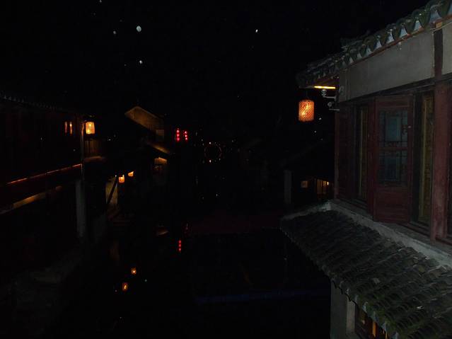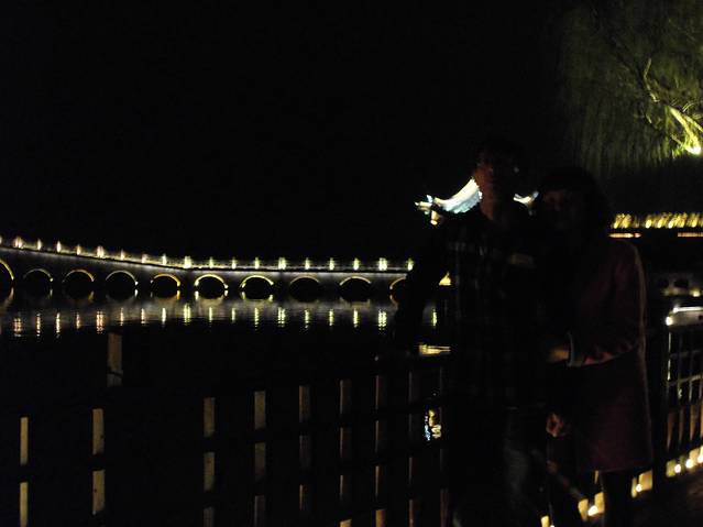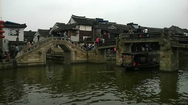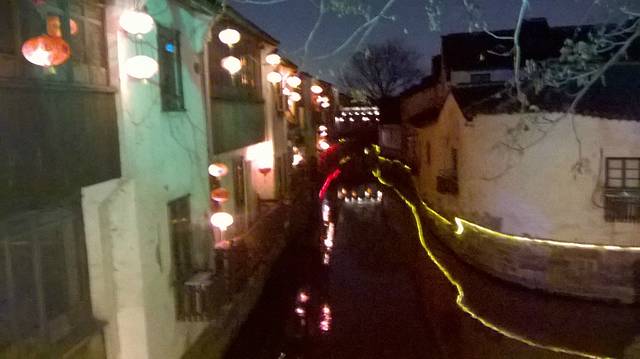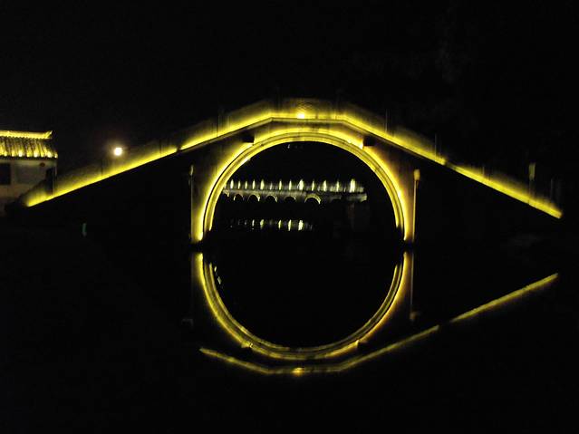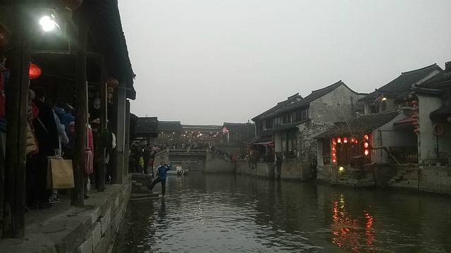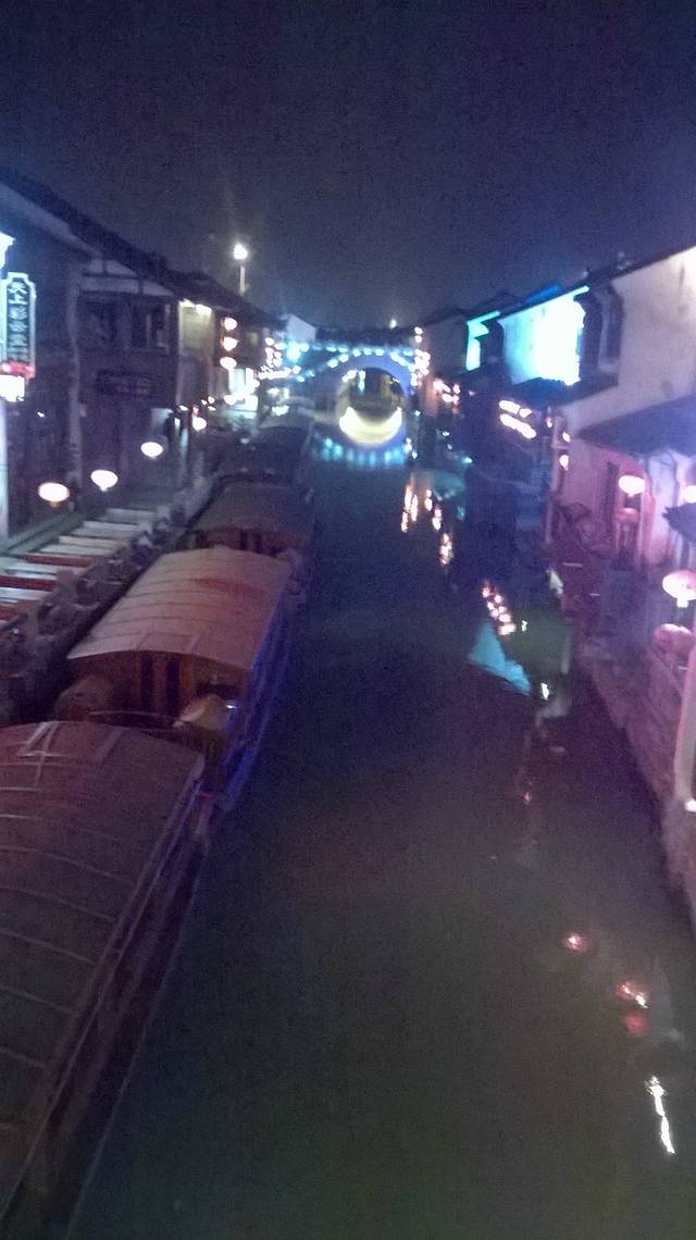 原本苏州乐园,临时改变方向,不知是对是错吧。察院场去观前街很近,酒店左拐直走就是观前街西,方向不变就是观前街东,出去就是临顿路。平江路和临顿路平行,中间有很多小弄小巷相接,其中大儒巷正对观前街东入口,初去的人不知道,现在知道吧。临顿路垂直白塔东路和干将路,平江路入口就是白塔东路,另一入口就是干将路,干将路旁边就是凤凰街,十全街,沧浪厅,网师园就在此,只因小弄小巷太多糊途,这正是苏州特点所在,韵味实足。观前街其是就购物街,和上海南京路步行街,武汉江汉路步行街,厦门中华路,所有旅游街道异曲同工,没有什么分别,观前街也是弄巷众多,稍不留神就丢了,有名太监弄就在街上,位于人民商场旁边,小吃购物,白天晚上人潮如涌,相当壮观。平江路商业中心也是八面玲珑,古色古香,青色小砖铺路,和江南小镇风格迵异,各地模仿能力太强大了,平江路河窄也能行船,水桥弄巷三大主题。上面说过平江路也分两段,东北街拙政园猴子林入口,一条老街比较怀旧,老苏州风貌,和七里山塘老街一样,映证历史文化,慢慢细走体会其中含意人文文化和建筑风貌;其次就是白塔东路入口,口味不同。细细品味。之后下午5点10分汽车,苏州火车站北广场上车,直驭周庄,心中汹涌澎湃,江南第一水乡是什么情形了,真实是这样了,提前预定沈家客栈,价格合适,在高客上司机就说了,这几天到周庄人特多,客栈起价300以上,没有预定提前订,否则露街头,看来比想像人还多,不过看来大家有备而来,近6点30分左右到达周庄汽车站,说好客栈来接,可因价格太低不来,提前预定便宜,无所谓漫步周庄外围景区,出站左手直走,过周庄大桥,时间也就20来分钟吧,之所以这晚来,相信大家应该知道,免费晚上7点过后值班人员回家,街道并不宽,纯粹乡镇风格,没有华丽外表,倒是周庄大桥夜景不错,人车分离很明显,国内少见,远远宝塔金光灿烂,水波荡漾 ,好幅山水画。踏入正门口时,人影浮动,车灯晃眼,周庄映入眼帘,终于来了我的梦中女神,人多车多,好不容易在古牌楼迎接我们,从入口到客栈这一段路走的好辛苦了,多的走不动,走不了,拼命朝前挤,路遇沈厅,张厅里面的人简直蚂蚁一样,让人生畏,这就是第一水乡周庄情形。放下疲惫,浏览夜景先从人少去开始,南市街后街 南湖秋月开始,那水波微微,夜晚下灯光秀格外诱人,此情此景此水此桥彼此对照感叹人生,遥池琼台也不过如此,依依不舍离开,街面上人也少些,可以通行了,路遇双桥,圆拱形风格,青石彻成。双桥成名就是因陈逸飞故乡的回忆,走向中国与世界,实际上西塘双桥更妙,只是没有赶上第一而已,时间决定未来吧。