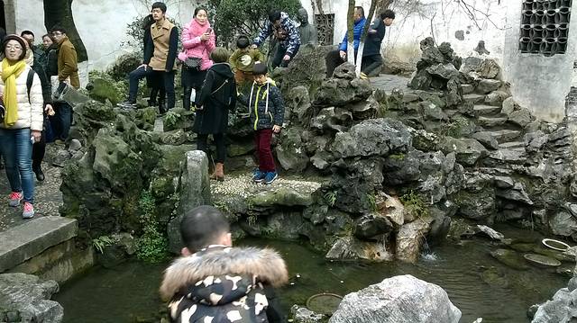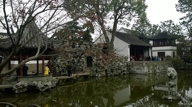 准备预计当天来的下午就去拙政园游玩,节省时间,可时间不够就免了,上面说了也相信路边兜售票的,便宜可信,也从网上查看了联票的情形,联系好了,同样便宜可信组团游玩,就这样就有目的去了,刚出酒店大门就看见拉“黄包车”,这是苏州特色,亮丽风景线,我们该尝试了,去拙政园,他们车都有牌照,正规军,上车之后和师付聊起来,告知买联票便宜,这也是我所知道的,顺着说可以了,那知道真的拉去旅行社了, 不过不是我订的那一家,价格有点出入,但都说冬季拙政园荷花不开没有看头,我坚守自己观念不变,走,后来看似老板出来一口价,100元,这也是适合价格,没去拙政园, 狮子林,水上游,唐寅园组团游。从性价比而言组团可以,不用操心路程和车辆,还有导游讲解,只不过要购物,有点累,建议考虑。没有去拙政园,听信他们,是个遗憾,劝告他人坚持原则才是对的,正如导游所说,来苏州看园林是吧,大人看人头,小孩看屁股,看到什么,只是心情问题,的错没错,狮子林不愧为假山王国,不同造型风格山势山貌,亭台楼榭依水相邻,相得益彰。所有石头都由太湖而来,也因此得名,从胥门上船,做在游艇上慢慢欣赏两边景物,听着导游讲解了解苏州历史,城市看农村,农村看城市,为了保护苏州风貌,牺牲和发展相对,看什么态度看问题,从旅游出发,从城市出发,苏州人民和政府做出了选择。沥沥拉拉下起小雨,更增添了游玩情趣,也沾湿了衣裳,春雨绵绵爽快了,在雨中浪漫唐伯虎宅第,呤听四大才子精髓,辩证唐伯虎风流,应证落迫才子真实情况,一代才子终有果,穷人买不起,达官不想要的窘迫局面,唐伯虎真实写照。众说纷纭自己查资料辩解。