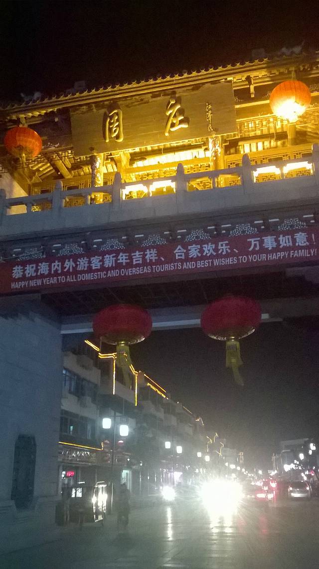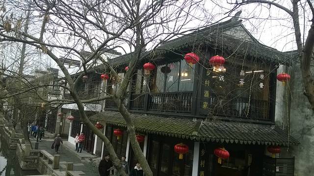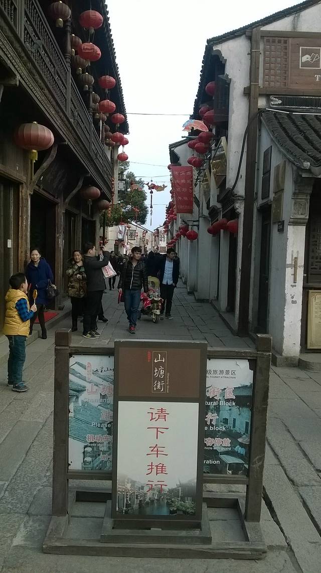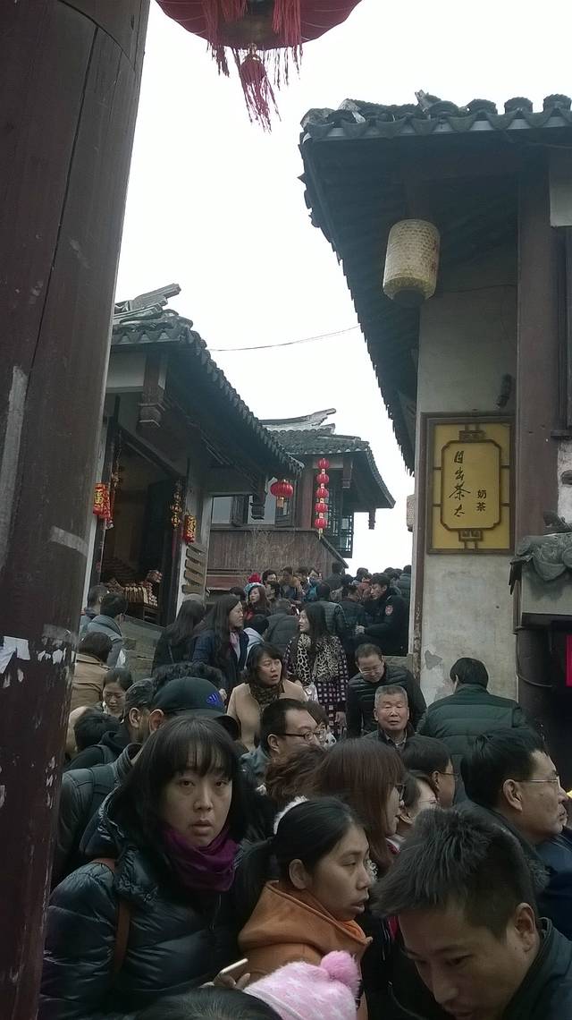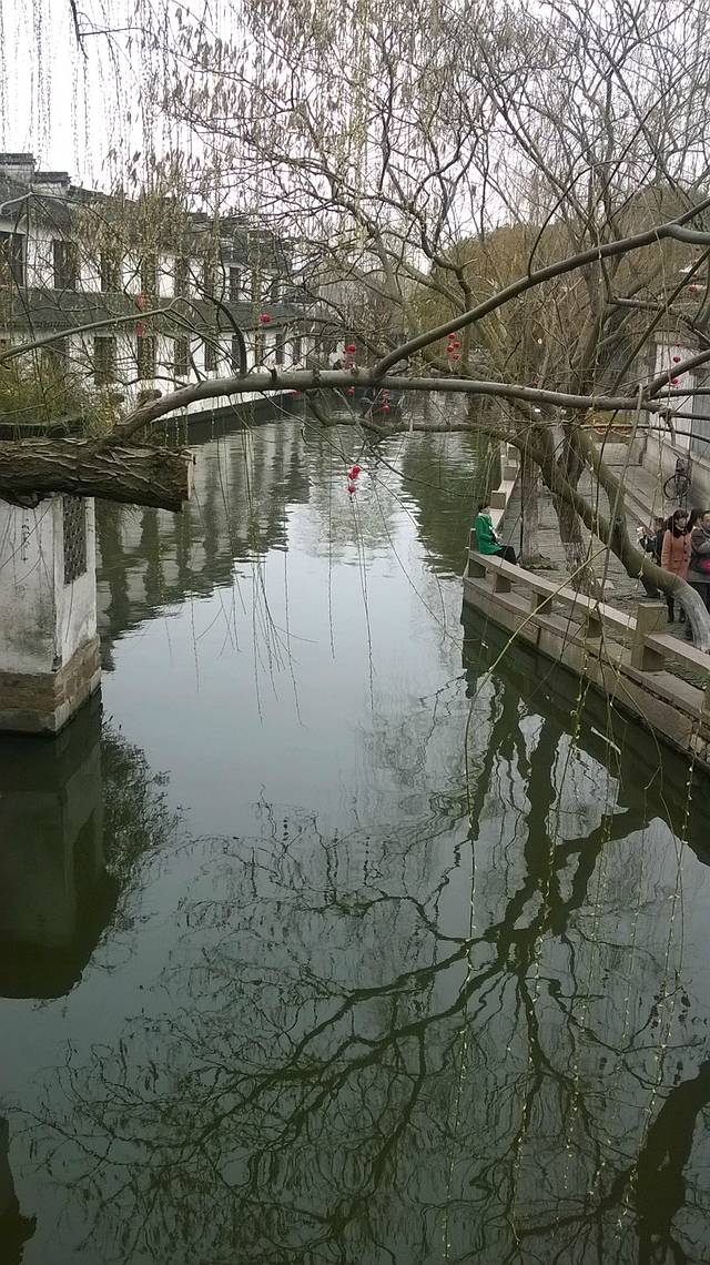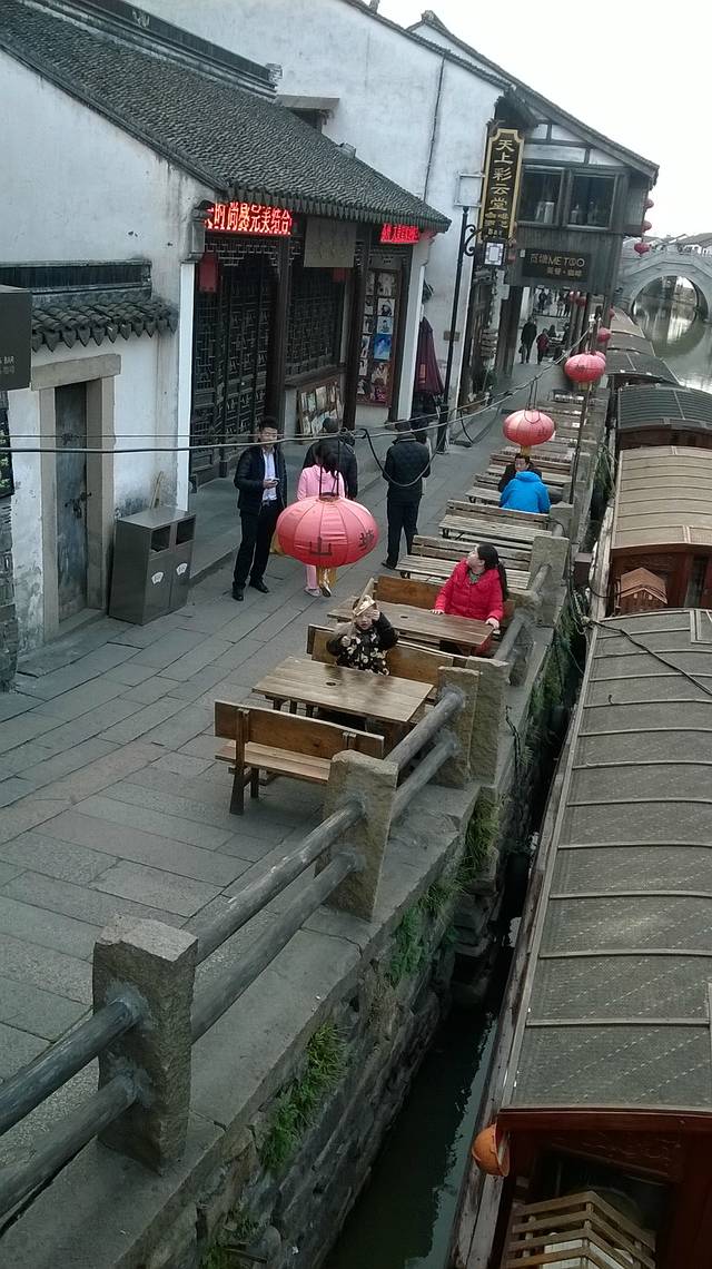 大年三十早上,蛮热闹的,商铺兢兢营业,值得学习哈。休息好之后出酒店右转,做公交到机桥寒山寺,站台上有指示好找,下车直走一段距离就看到景区牌彷,红色灯笼指引煞是喜庆。沿途游人如织,选择出游过年的人们也是一大特色。之所以来枫桥寒山寺相信大家明白,一首诗的缘故吧,也是信徒的信念,钟楼,大钟宛都是祈福的,红红的灯笼迎接八方来客、枫桥寒山寺同一地方,不同景点,各自取舍 ,我是寒山寺,之后原路返回过马路做车去虎丘,吴中第一山,是吴王父亲死后塟于此地,因有老虎出现,故名虎丘。虎丘有关剑池,虎丘塔,水面镜子多偷听讲解,都以园林为主,其是并不大,后来为了旅游而开发的,失去意义。七里山塘就在旁边,七里分为老街和休闲街,老街马上就要拆除,反映了山塘历代繁荣,漫步老街,人烟稀少,只有居民出入,更有体会,游玩韵味,仿佛回到那时情形,人声鼎沸,商贾忘来,沿河直上七里不算近了,新旧两重天,热闹非凡,拥挤不堪,呦喝不断,年夜饭就在这欢度除夕。