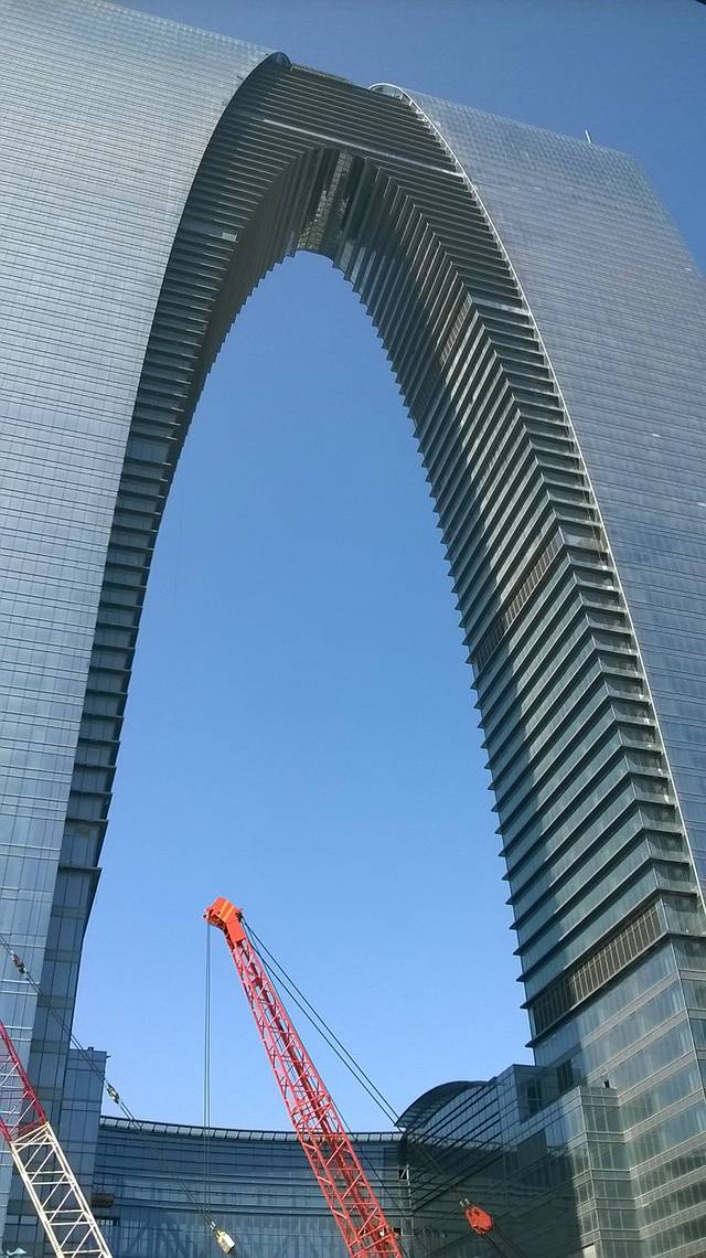 苏州并不大,分为三在块,古城区 园区 新区 园区由苏州政府和新加坡政府共同建设富有欧陆风情商业中心,休闲,娱乐,观赏,购物,吃喝一条龙服务,典型的苏州现代化进程和园林艺术相得益彰。新区由日本和韩国建造,典型是苏州乐园。察院场没有直达公交,需做地铁可从左手直走乐桥站,或走到观前街附近做公交也可以,特别近当初不太清楚,多走一站做地铁,可以询问酒店工作人员省时间,东方之门3口出,就迎目标致性秋裤门建筑,的确高大威猛,有气势有海拔,每个城市都有自己特点和标致性,苏州也不例外,网传过于厉害,实际建筑风格也不寒酸,有独特之处,秋裤也是国人必备之物,保暖之物,网上这样传说不足,国人杯具,建筑没有什么好看不好看,只是心里承受之力,如果投放后,我相信大家也习已为常,再加上美妙灯光投影,夜幕下金鸡湖会更美丽动人,湖滨大道,李公堤,环湖木栈道都是休闲放松的,更迎合西方人习惯,让国人也快速迈入发达国家行列,中国发展也高速可国人享受生活却很低调,而苏州借鉴新加坡经验是独树一帜的,值得点赞,也是接合自身条件,做到优中更优,好中更好,没有瑕次。沿金鸡湖足足漫步好长时间,领略湖中山色,建筑风格,人文景观,不虚此行,想走到对面摩天轮是可不行的,风情街,水街,休闲步行街 ,园区实在太美了,一座现代化城市无法用语言来形容,上金鸡大道做车转车到对面摩天轮,实际就是环湖一圈,多亏导航有用,建议大家出来带导航,有的本地人也不知道了,多问没用靠导航。满以为摩天轮游玩收费,公园也门票,人太多,有些项目检修,所有没去是对的了,散去之后,朝圆融集团时代广场进军,圆融集团是家大规模多元化产业,什么购物中心,天幕街,天幕电影一条龙服务,休闲购物观赏由为重要,热闹非凡,只因春节稍清静些,另有情趣。商业中心不用介绍大同小异,只是格局和规模,建筑风格不同而以,大城市当然是太智慧,高起点,深眼光,多头鸟。