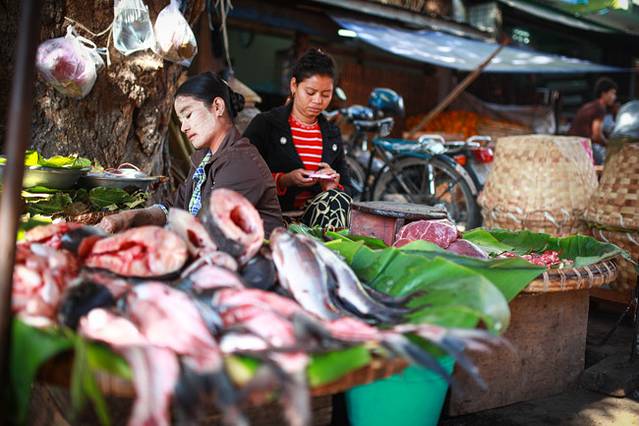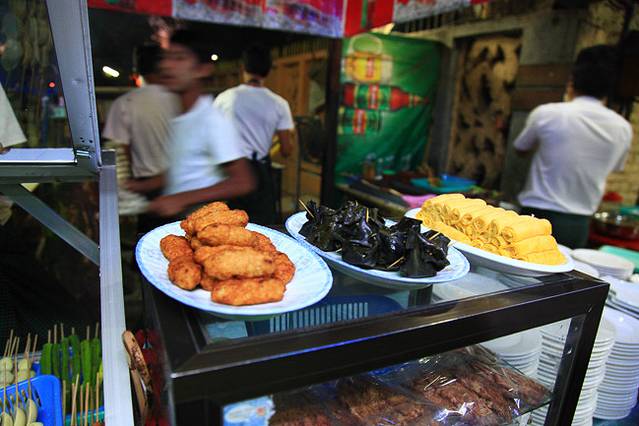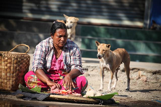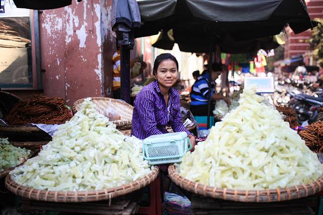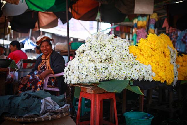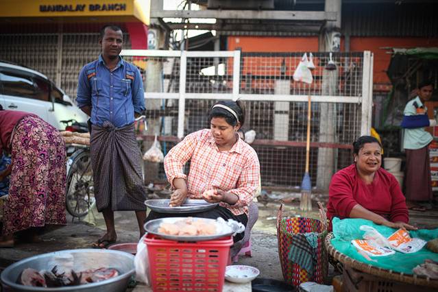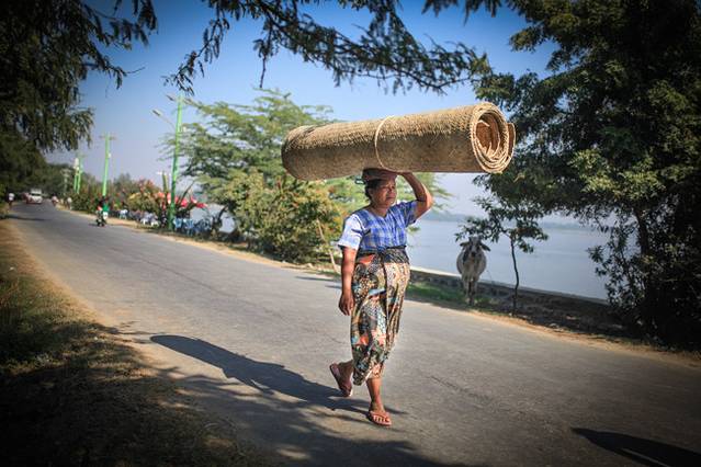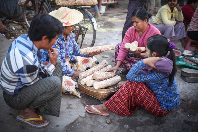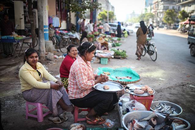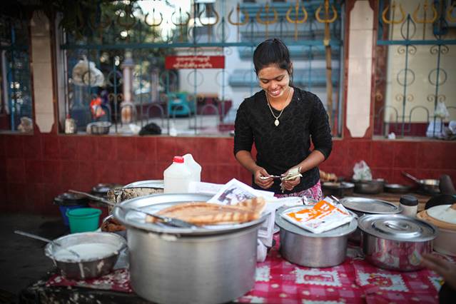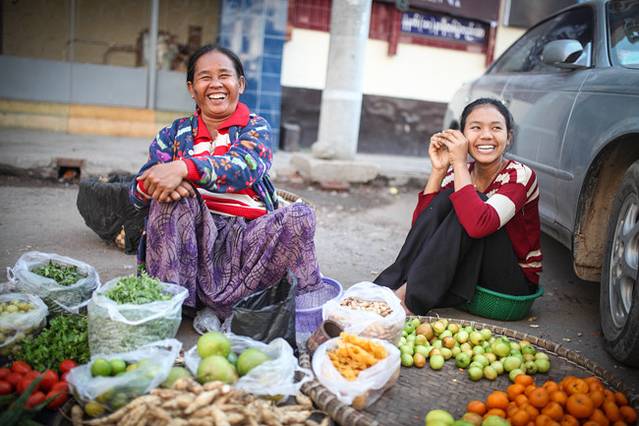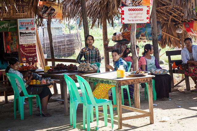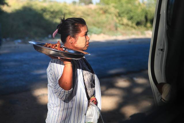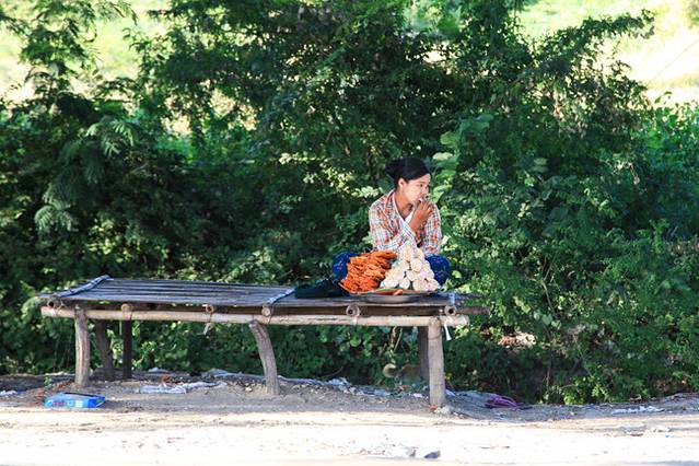 路上卖东西的缅甸妇女