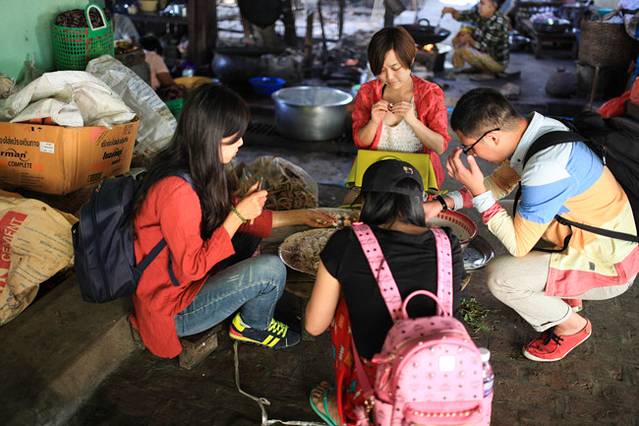 她们也非常的热情,帮我们涂缅甸最流行的化妆品——特纳卡