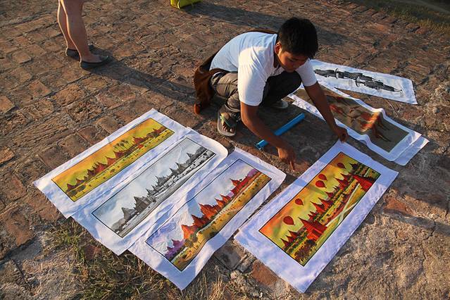 刚开始还没什么人,越到天明,人越来越多,各种交通工具都来了,摩托车,自行车,马车,taxi,大巴车,一下子整个佛塔都布满了人!