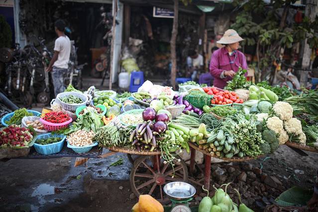 曼德勒 我没有看到一个像样的农贸市场,只是在电影院的背后有一条街,早上有很多卖农产品的商贩聚集在这里,也就变成了一个农贸市场