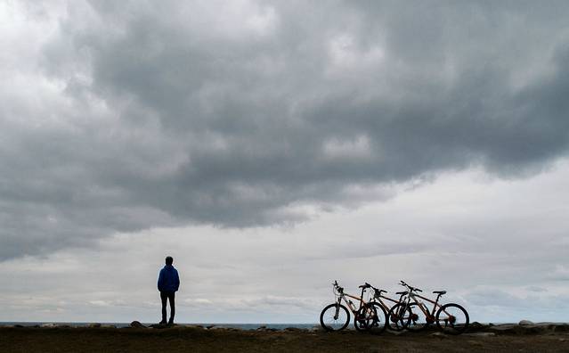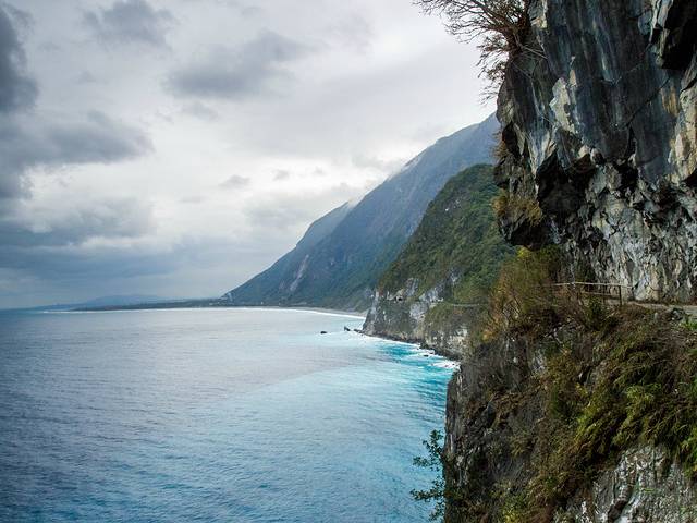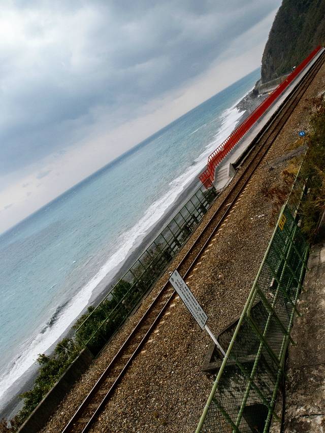 这一天可以算是个整趟旅程的小高潮,可惜彬哥因为时间原因选择参团一日游玩太鲁阁和清水断崖以及七星潭三个点,然后再赶当天晚上的火车去台北。而我们剩下仨本打算结束腐败之旅到giant甲租乙还自行车骑到台北,没想到这种租自行车方式需要提前一个月时间(至少提前一周)打电话预约。于是我们不得不选择了当天租自行车骑完当天回花莲还。台湾自行车真是非常便宜,我们租一天的租金是150NTD,也就是30元人民币。办好手续拿到自行车便开始了我们这次单天骑行一日游。一路阴云,还时不时飘着小雨,就在这样的天气下,骑起来也不怎么感觉冷,地理位置偏南的台湾冬天骑车就是爽啊。我们先来到了七星潭,游人不多,说是潭,其实已经是一处海湾,正面迎着太平洋。