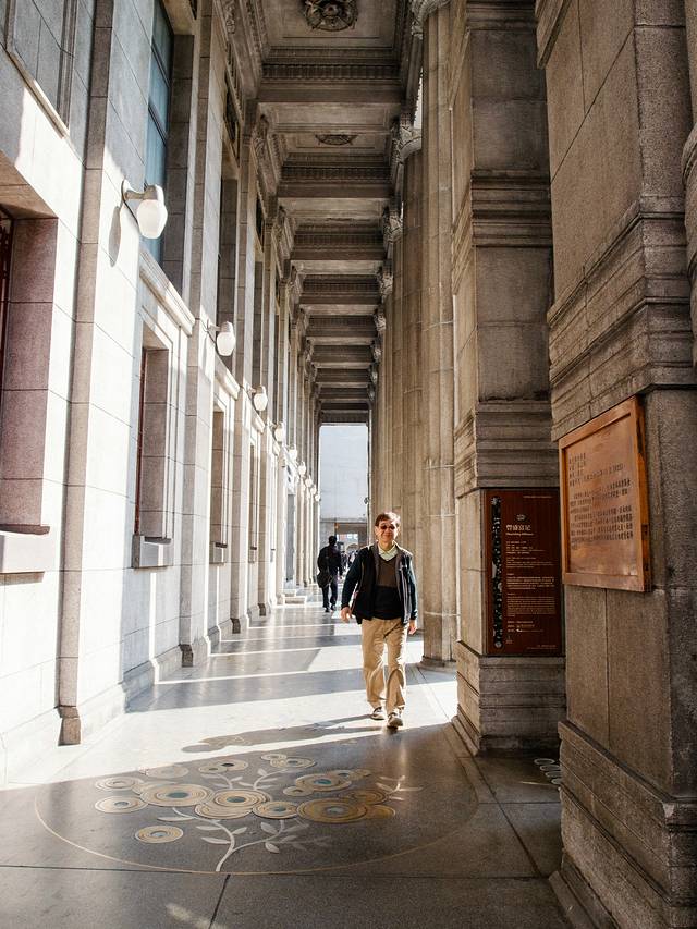 海妖哥是今天一早的飞机,起床就走了。然后我是下午5点的飞机,算算还有比较充足的大半天时间,今天我再没什么安排,颗颗还有买化妆品的任务,于是我们就出了门悠悠吃个早饭,漫无目的的溜达起来,反正两条腿走哪儿算哪儿,上午的台北,多数百货商场都没开业。走过一处街头,我们不知不觉就溜达到了这个叫中山堂的地方。台北很多公共建筑都是免费开放的,我们走进去,楼下一位头发半白的老太太从服务台出来说她是这里做义工,主动带我们参观了整个建筑,一路上给我们讲这座公共建筑的历史与兴衰,包括里面的一些装饰画像的来历和寓意。通过和她聊天我们才知道她已经退休了,在这之前是台北的一名中学老师。在台湾像她们这样退休后到这些公共建筑和景点里担任长期甚至是定期义工的老人还有很多,退休后,他们依然坚持用自己觉得有意义的方式为社会贡献自己的一份力,也让自己的晚年过得恬静充实。