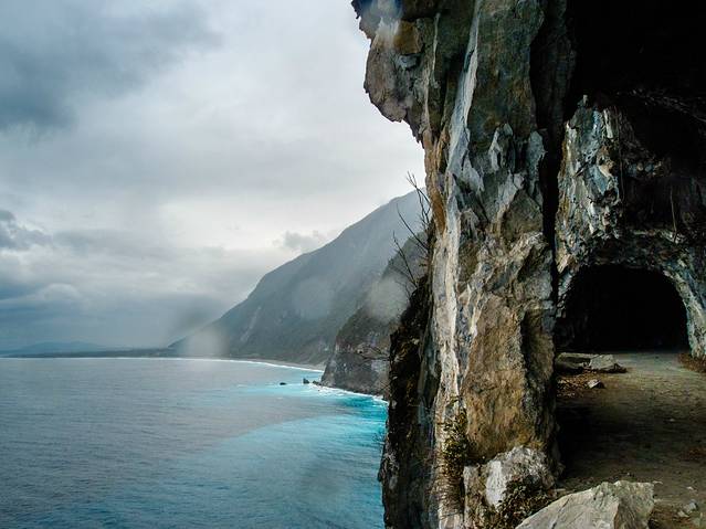 参观完慈济沿着苏花公路我们一路向北,清水断崖的风光确实绝美,一些路边废弃的隧道还能停下来钻进去走到崖边。这些隧道果然位置险绝(我之前看台湾纪录片中有介绍过)。一路上我们一边计划一边走,路过崇德火车站查看了时间表以后我们选择骑到和仁火车站而止,然后搭区间车回花莲。虽然这次来天气并不算特别好,因为时间限制我最终也没有选择单车环岛的方式,但是这段在花莲的单天骑行也算圆了我当年苏花公路的骑行梦。而颗颗是第一次骑山地车小长途,我和海妖路上还调侃他说“一上来就骑行苏花公路这么险绝的路段,骑行生涯起点还挺高的啊。”