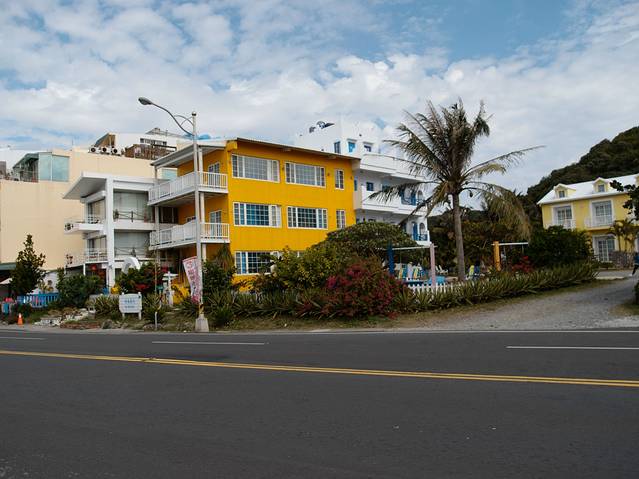 大约早上9点的样子,大家吃过了早饭,跟Lily打过招呼以后我们就兴致勃勃的出发了,今天的路线电瓶车要开60多公里,对于续航问题虽然我们心里还打着鼓,不过已经不是那么担心了。沿路经过垦丁大街,道旁建筑颜色变得丰富多彩起来,不过我们并没有停留太久。我想骑车从这些鲜艳的建筑中穿过本身就是一种体验吧。