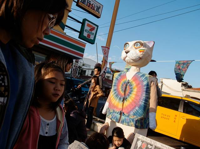 从码头坐上公交我们来到金城镇上,一路已有不少繁体字映入眼帘。由于之前看过一些攻略,到金城镇我下了公交就到镇中心附近一家7-11问了下能不能寄存行李,店里阿姨扫了眼我们背的这种大包竟然也毫不犹豫的答应了,而且是免费的。。。她知道我们大陆游客身份以后推荐我们直接到街对面的旅游服务中心凭入台证借自行车,然后我们就去借了,竟然也可以,服务中心那个小哥态度超级好,微笑着带我们去地下室取车了。
