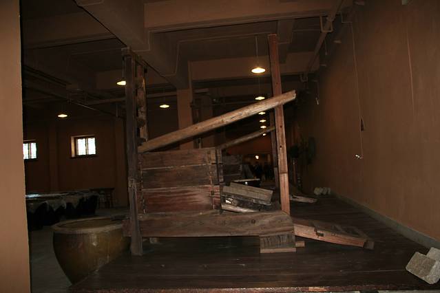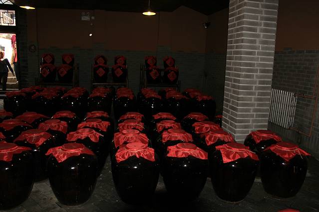不多时来到了酒窖,刚到门口就可以闻到酒香,走进去一看大吃一惊。五谷杂粮摆放整齐,工作人员正在酿酒,只见旁边的大厅里一排排的大酒缸席地而坐,大大的“酒”字赫然耸立。来到这里的游客无不一一驻足,闻闻酒香,品尝美酒。小锟看到这些大酒缸,不时地用手摸摸,但要注意那些放在旁边的小酒缸,千万不要让孩子打破哦。