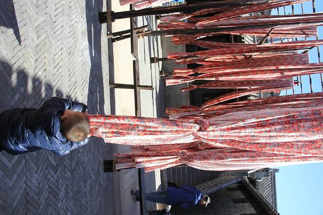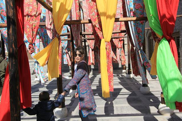 4、 景区有些景点会有特色的成品展示,孩子游玩的同时不要损坏这些成品。例如染布坊的染布,切忌用力撕扯。同时染布挂在高高的固定支架上,注意不要让孩子来回拽着舞动。